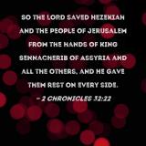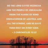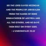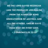 So the LORD saved Hezekiah and the people of Jerusalem from the hands of King Sennacherib of Assyria and all the others, and He gave them rest on every side.