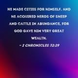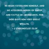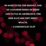 He made cities for himself, and he acquired herds of sheep and cattle in abundance, for God gave him very great wealth.