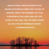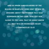 And so when ambassadors of the rulers of Babylon were sent to him to inquire about the wonder that had happened in the land, God left him alone to test him, that He might know all that was in Hezekiah's heart.
