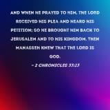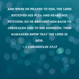 And when he prayed to Him, the LORD received his plea and heard his petition; so He brought him back to Jerusalem and to his kingdom. Then Manasseh knew that the LORD is God.