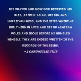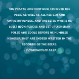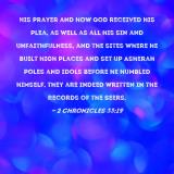 Pictures and Artwork His prayer and how God received his plea, as well as all his sin and unfaithfulness, and the sites where he built high places and set up Asherah poles and idols before he humbled himself, they are indeed written in the Records of the Seers. |