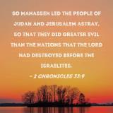So Manasseh led the people of Judah and Jerusalem astray, so that they did greater evil than the nations that the LORD had destroyed before the Israelites.