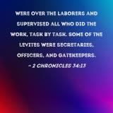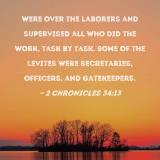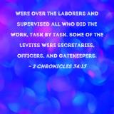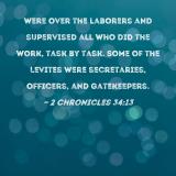 were over the laborers and supervised all who did the work, task by task. Some of the Levites were secretaries, officers, and gatekeepers.