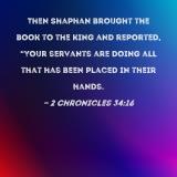 Then Shaphan brought the book to the king and reported, "Your servants are doing all that has been placed in their hands.