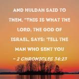 And Huldah said to them, "This is what the LORD, the God of Israel, says: 'Tell the man who sent you