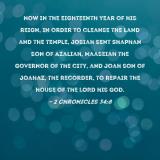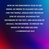 Pictures and Artwork Now in the eighteenth year of his reign, in order to cleanse the land and the temple, Josiah sent Shaphan son of Azaliah, Maaseiah the governor of the city, and Joah son of Joahaz, the recorder, to repair the house of the LORD his God. |