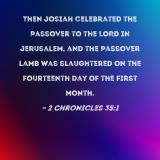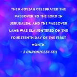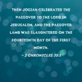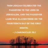 Then Josiah celebrated the Passover to the LORD in Jerusalem, and the Passover lamb was slaughtered on the fourteenth day of the first month.