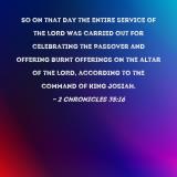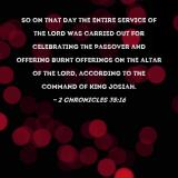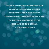 So on that day the entire service of the LORD was carried out for celebrating the Passover and offering burnt offerings on the altar of the LORD, according to the command of King Josiah.
