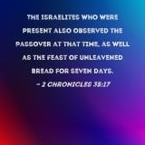 The Israelites who were present also observed the Passover at that time, as well as the Feast of Unleavened Bread for seven days.