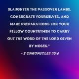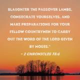 Slaughter the Passover lambs, consecrate yourselves, and make preparations for your fellow countrymen to carry out the word of the LORD given by Moses."