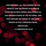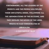 Furthermore, all the leaders of the priests and the people multiplied their unfaithful deeds, following all the abominations of the nations, and they defiled the house of the LORD, which He had consecrated in Jerusalem.