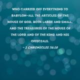 who carried off everything to Babylon--all the articles of the house of God, both large and small, and the treasures of the house of the LORD and of the king and his officials.