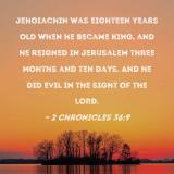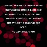 Jehoiachin was eighteen years old when he became king, and he reigned in Jerusalem three months and ten days. And he did evil in the sight of the LORD.