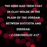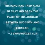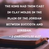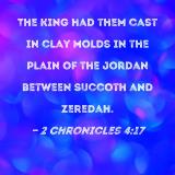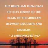 The king had them cast in clay molds in the plain of the Jordan between Succoth and Zeredah.