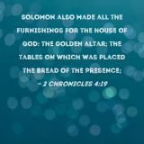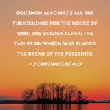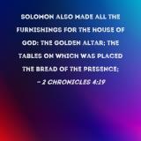 Solomon also made all the furnishings for the house of God: the golden altar; the tables on which was placed the Bread of the Presence;