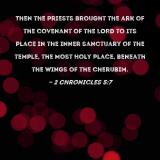 Then the priests brought the ark of the covenant of the LORD to its place in the inner sanctuary of the temple, the Most Holy Place, beneath the wings of the cherubim.