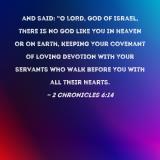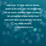 and said: "O LORD, God of Israel, there is no God like You in heaven or on earth, keeping Your covenant of loving devotion with Your servants who walk before You with all their hearts.