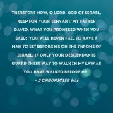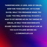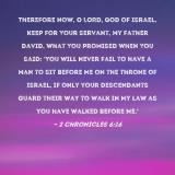 Pictures and Artwork Therefore now, O LORD, God of Israel, keep for Your servant, my father David, what You promised when You said: 'You will never fail to have a man to sit before Me on the throne of Israel, if only your descendants guard their way to walk in My law as you have walked before Me.' |