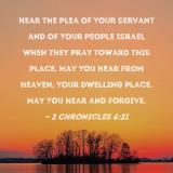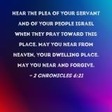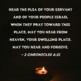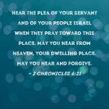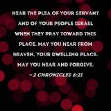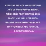 Hear the plea of Your servant and of Your people Israel when they pray toward this place. May You hear from heaven, Your dwelling place. May You hear and forgive.