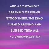 And as the whole assembly of Israel stood there, the king turned around and blessed them all