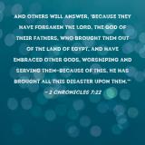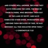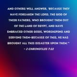 Pictures and Artwork And others will answer, 'Because they have forsaken the LORD, the God of their fathers, who brought them out of the land of Egypt, and have embraced other gods, worshiping and serving them--because of this, He has brought all this disaster upon them.'" |