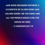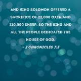 And King Solomon offered a sacrifice of 22,000 oxen and 120,000 sheep. So the king and all the people dedicated the house of God.