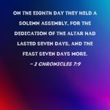 On the eighth day they held a solemn assembly, for the dedication of the altar had lasted seven days, and the feast seven days more.