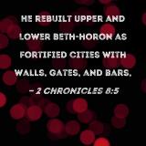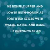 He rebuilt Upper and Lower Beth-horon as fortified cities with walls, gates, and bars,