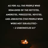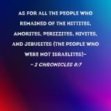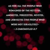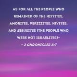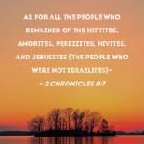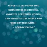 As for all the people who remained of the Hittites, Amorites, Perizzites, Hivites, and Jebusites (the people who were not Israelites)--