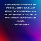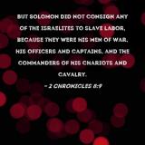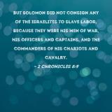 But Solomon did not consign any of the Israelites to slave labor, because they were his men of war, his officers and captains, and the commanders of his chariots and cavalry.
