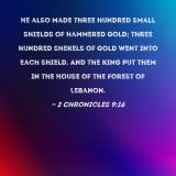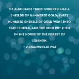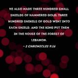 He also made three hundred small shields of hammered gold; three hundred shekels of gold went into each shield. And the king put them in the House of the Forest of Lebanon.
