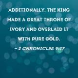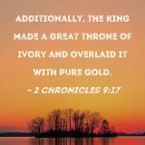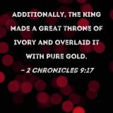 Additionally, the king made a great throne of ivory and overlaid it with pure gold.
