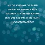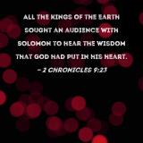 All the kings of the earth sought an audience with Solomon to hear the wisdom that God had put in his heart.