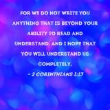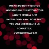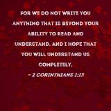 For we do not write you anything that is beyond your ability to read and understand. And I hope that you will understand us completely,