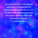 We do not want you to be unaware, brothers, of the hardships we encountered in the province of Asia. We were under a burden far beyond our ability to endure, so that we despaired even of life.