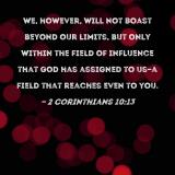 We, however, will not boast beyond our limits, but only within the field of influence that God has assigned to us--a field that reaches even to you.
