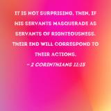 It is not surprising, then, if his servants masquerade as servants of righteousness. Their end will correspond to their actions.