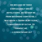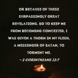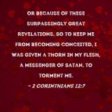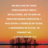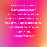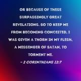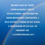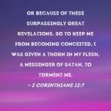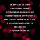 or because of these surpassingly great revelations. So to keep me from becoming conceited, I was given a thorn in my flesh, a messenger of Satan, to torment me.