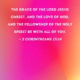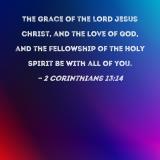 The grace of the Lord Jesus Christ, and the love of God, and the fellowship of the Holy Spirit be with all of you.