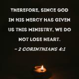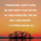Therefore, since God in His mercy has given us this ministry, we do not lose heart.