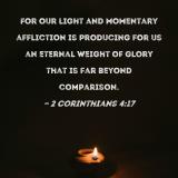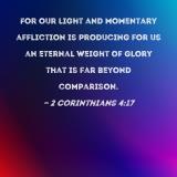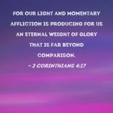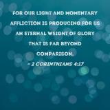 For our light and momentary affliction is producing for us an eternal weight of glory that is far beyond comparison.