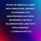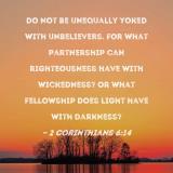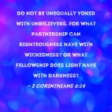 Do not be unequally yoked with unbelievers. For what partnership can righteousness have with wickedness? Or what fellowship does light have with darkness?
