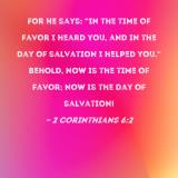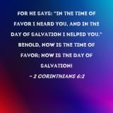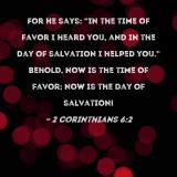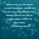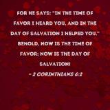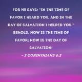 For He says: "In the time of favor I heard you, and in the day of salvation I helped you." Behold, now is the time of favor; now is the day of salvation!