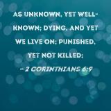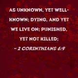 as unknown, yet well-known; dying, and yet we live on; punished, yet not killed;