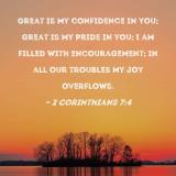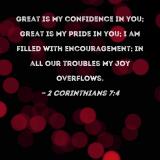 Great is my confidence in you; great is my pride in you; I am filled with encouragement; in all our troubles my joy overflows.