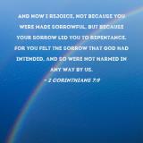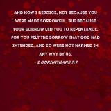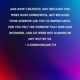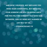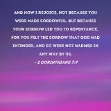 And now I rejoice, not because you were made sorrowful, but because your sorrow led you to repentance. For you felt the sorrow that God had intended, and so were not harmed in any way by us.