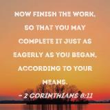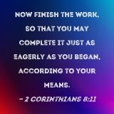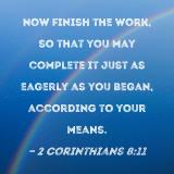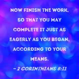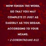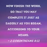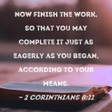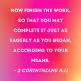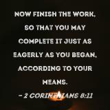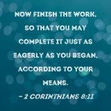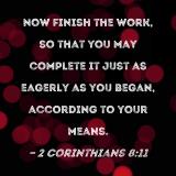 Now finish the work, so that you may complete it just as eagerly as you began, according to your means.