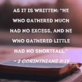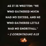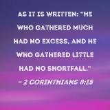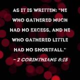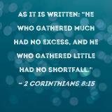 As it is written: "He who gathered much had no excess, and he who gathered little had no shortfall."