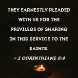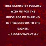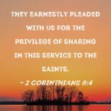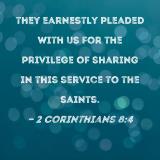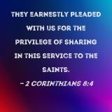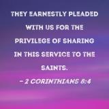 they earnestly pleaded with us for the privilege of sharing in this service to the saints.