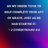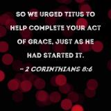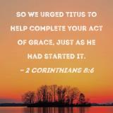 So we urged Titus to help complete your act of grace, just as he had started it.